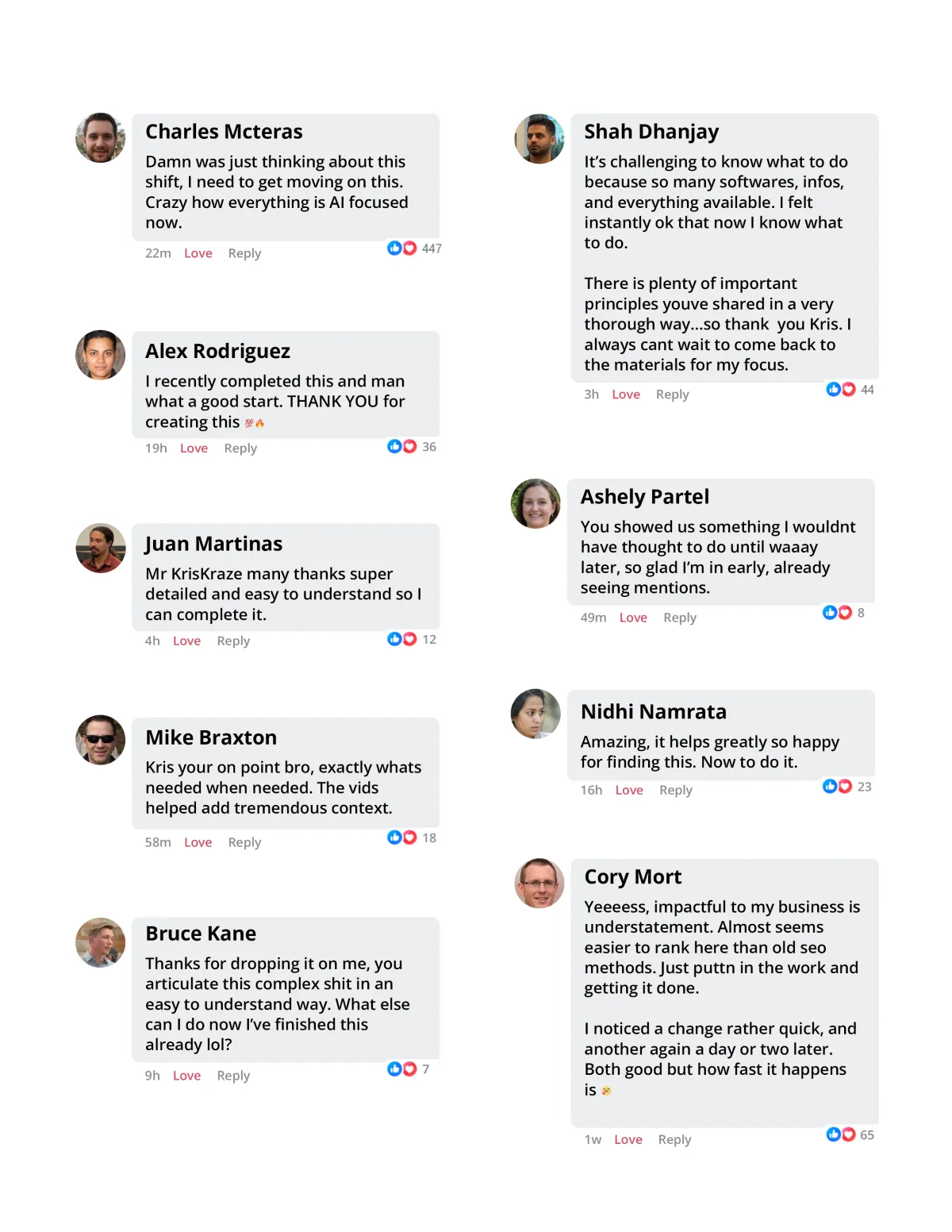 Kris Kraze Mullins is a serial entrepreneur, consultant, and business mentor who's bootstrapped 7 different businesses to over $1 million per year, 2 over $10 million using marketing methods discussed in this offer. He’s an industry-recognized expert in AI Visibility, business development, advanced marketing strategies, and scaling.